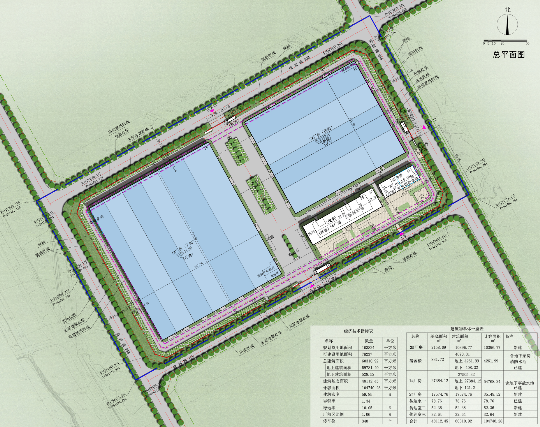 在規(guī)劃布局上,園區(qū)注重空間的高效利用和功能的合理分區(qū)。生產(chǎn)區(qū)、研發(fā)區(qū)、物流區(qū)等功能區(qū)域劃分明確,既保證了生產(chǎn)流程的順暢,又便于企業(yè)對(duì)外的交流與合作。本設(shè)計(jì)案例充分考慮了地形地貌、氣候條件等自然因素,通過科學(xué)合理的布局,減少了土方開挖和回填量,降低了地基處理難度,從而減少了工程量和相應(yīng)造價(jià)。